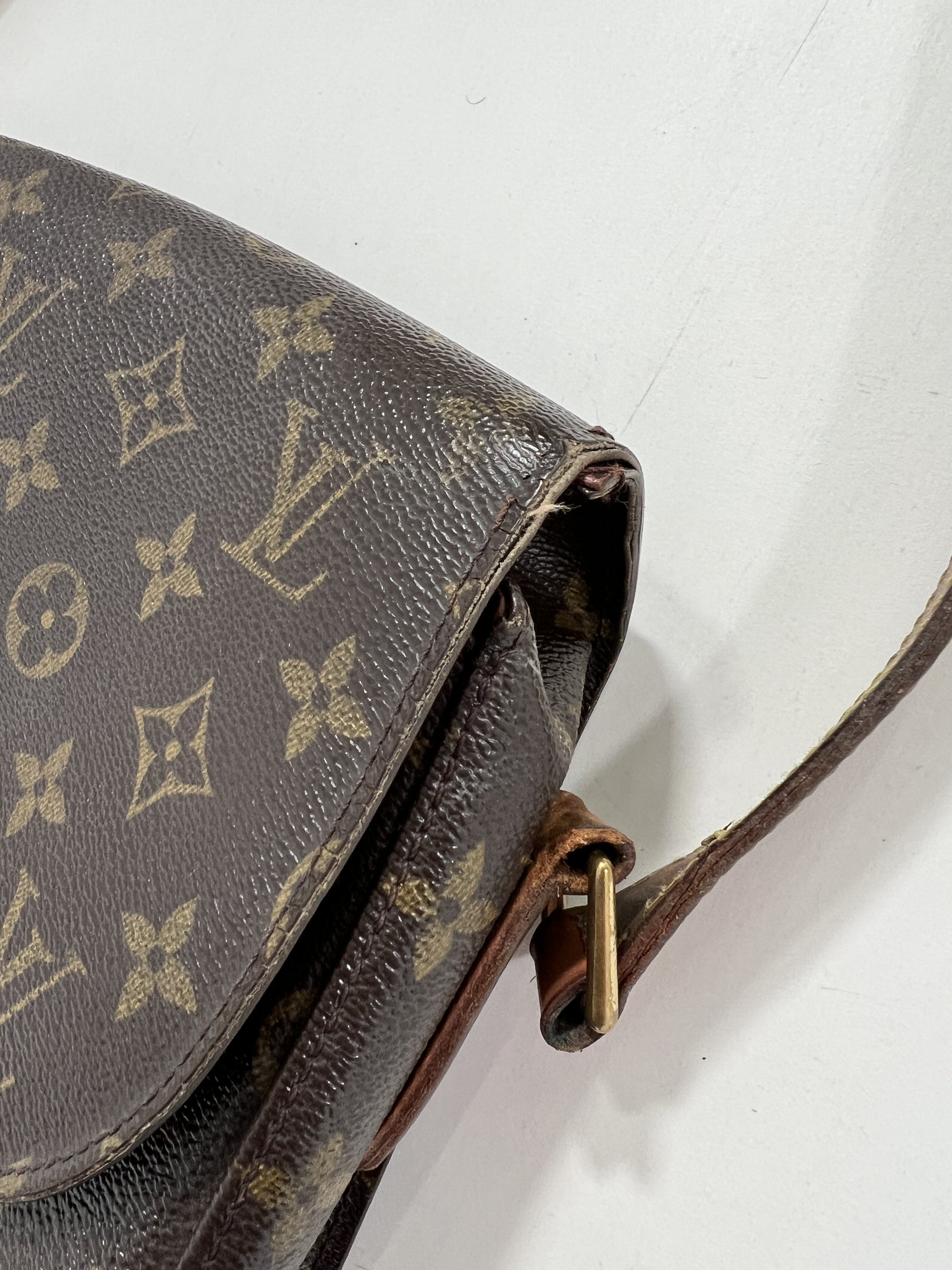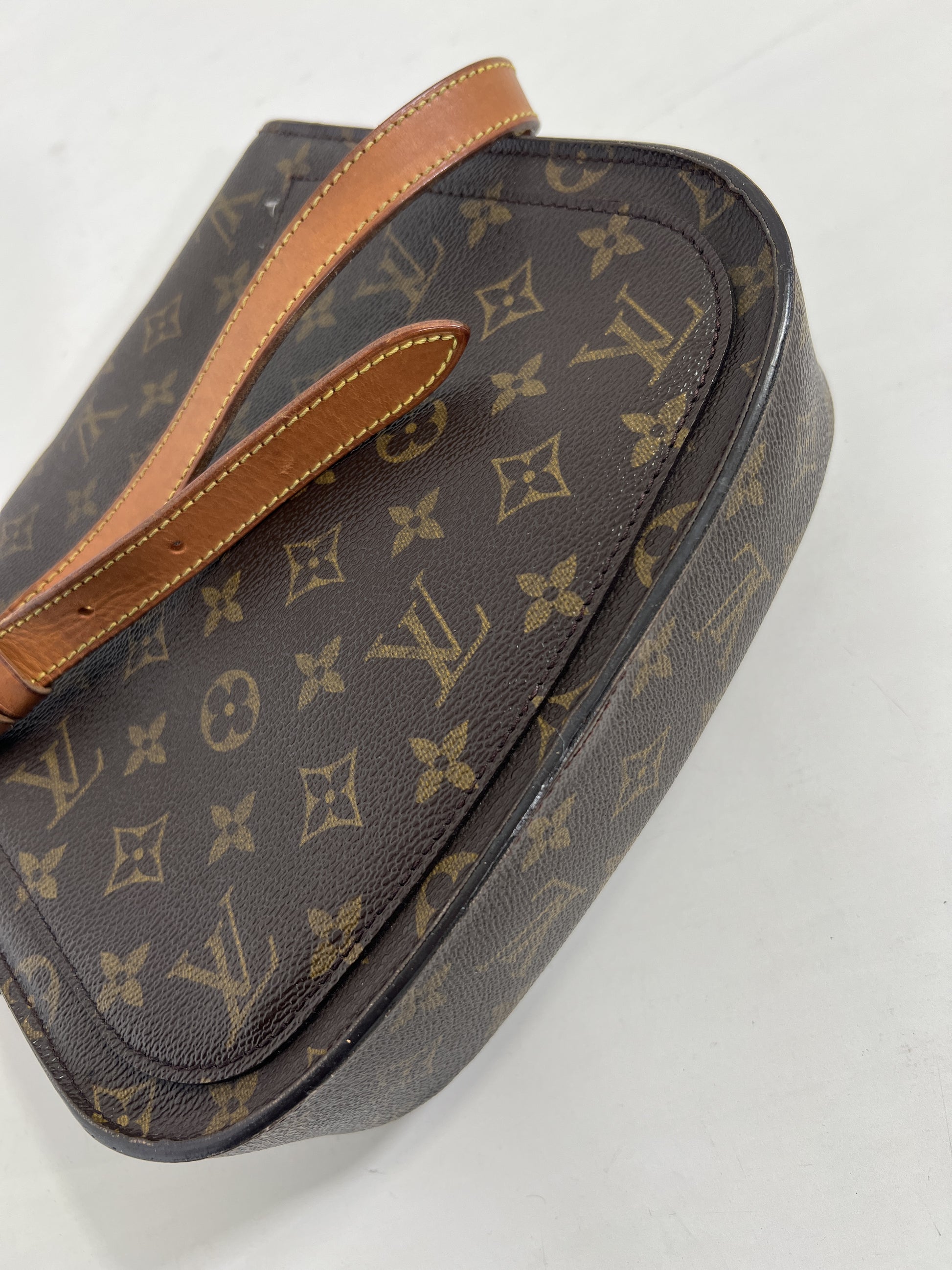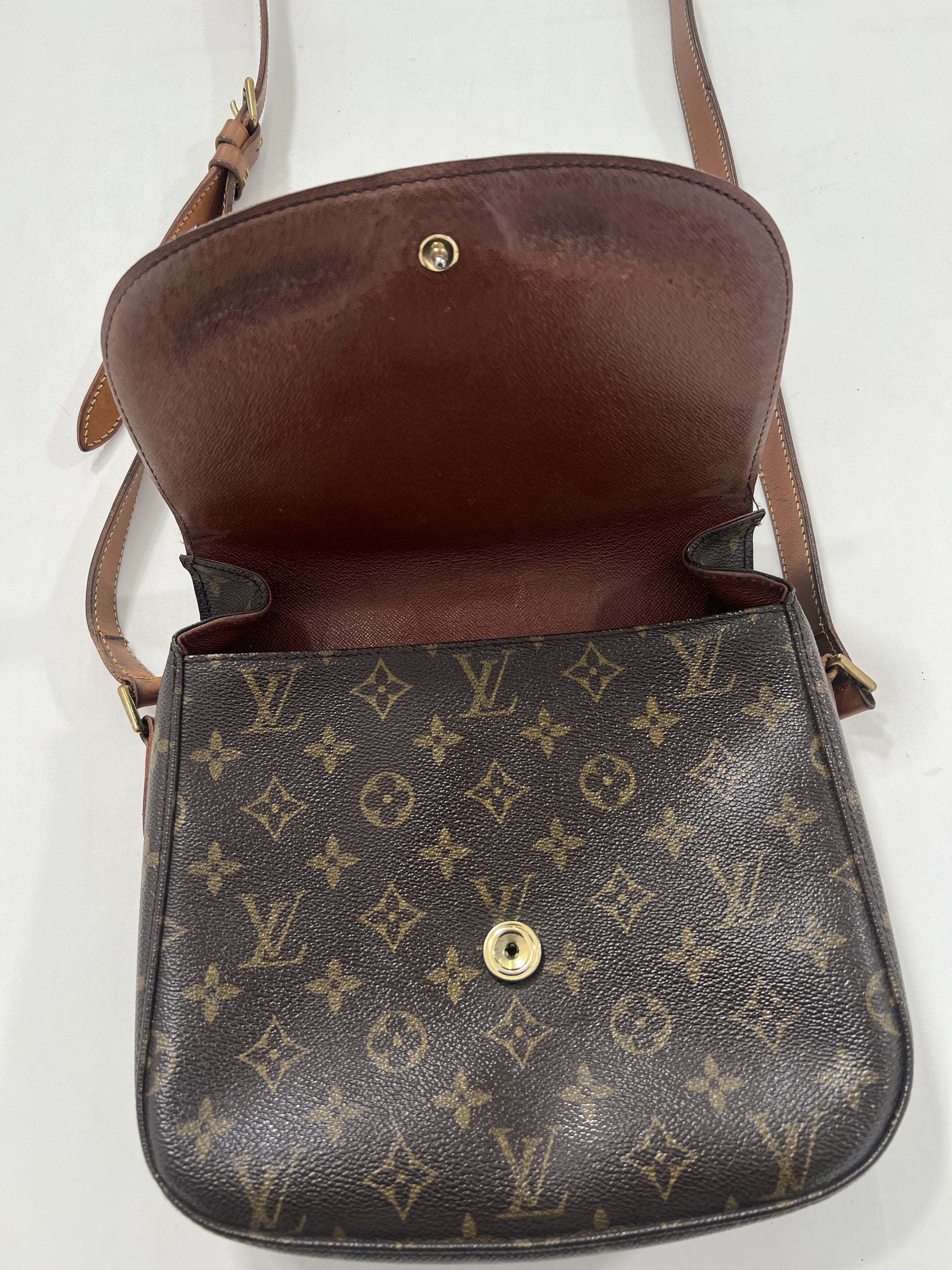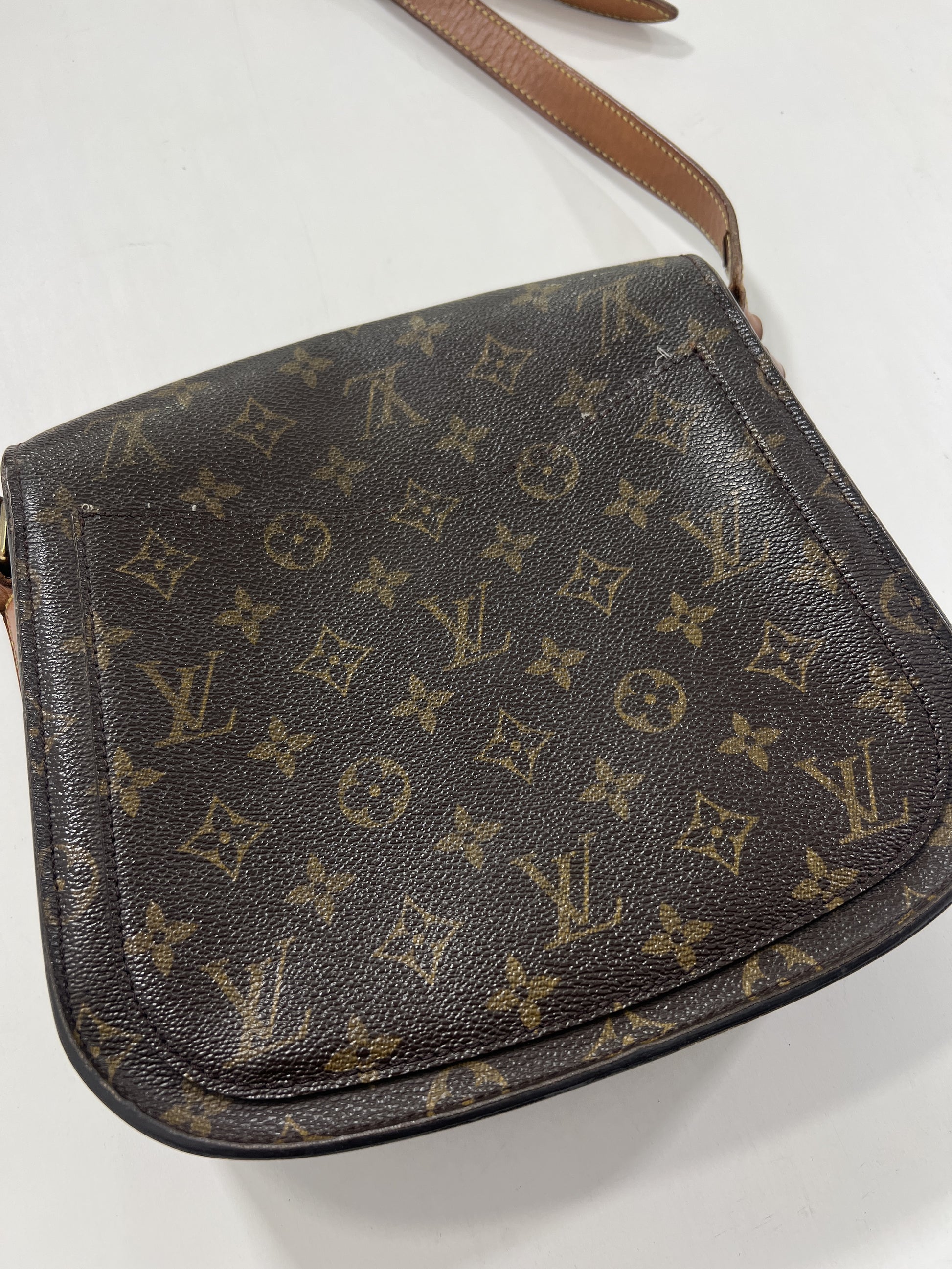 Borsa a tracolla Louis Vuitton Saint Cloud MM Monogram. Ottime condizioni nonostante l'età della borsa. Tracolla intatta, taschino interno con fibbia oro. Unico difetto da evidenziare esterno, risolvibile con ritocco marrone su pelle da esperto.