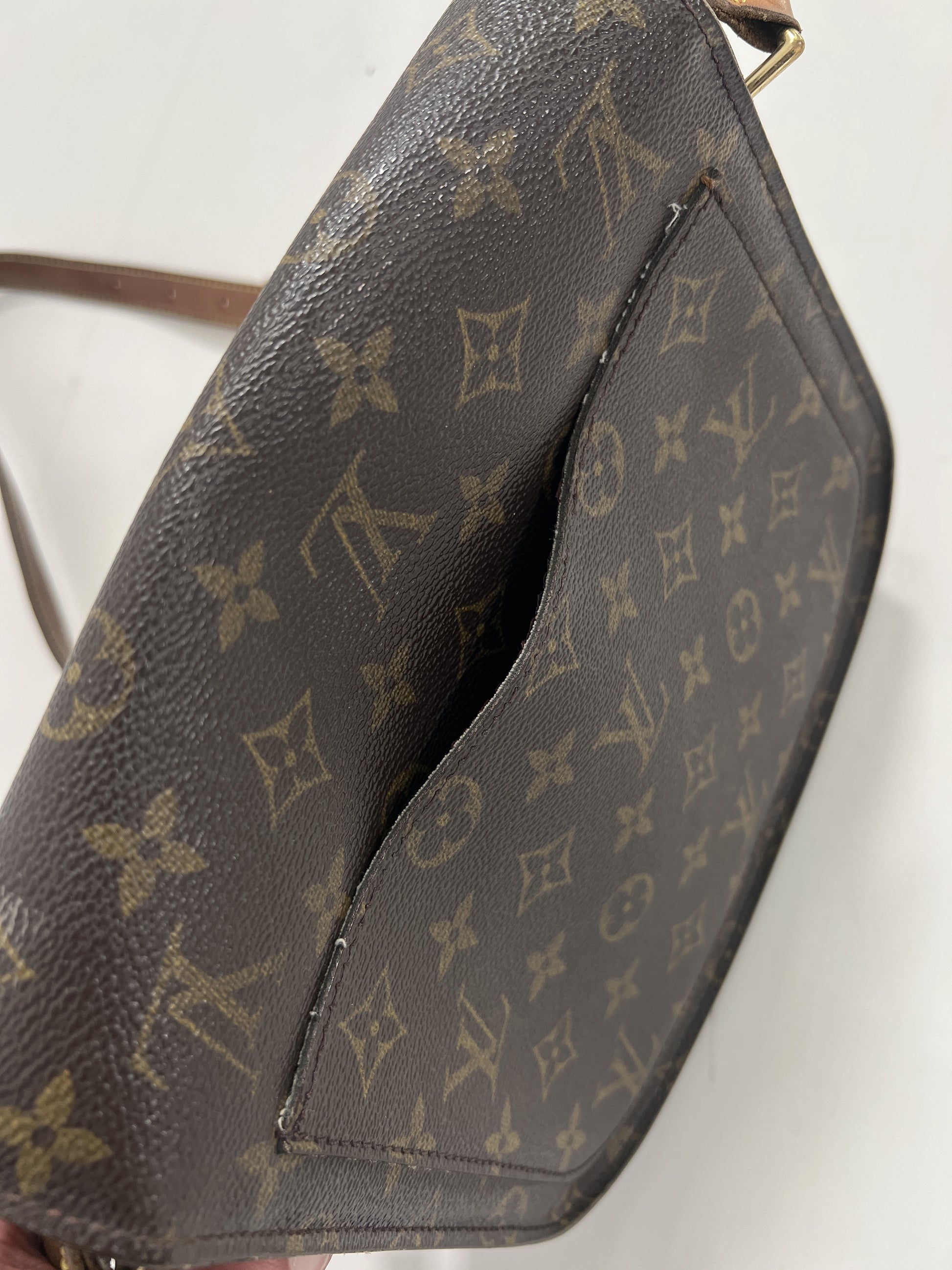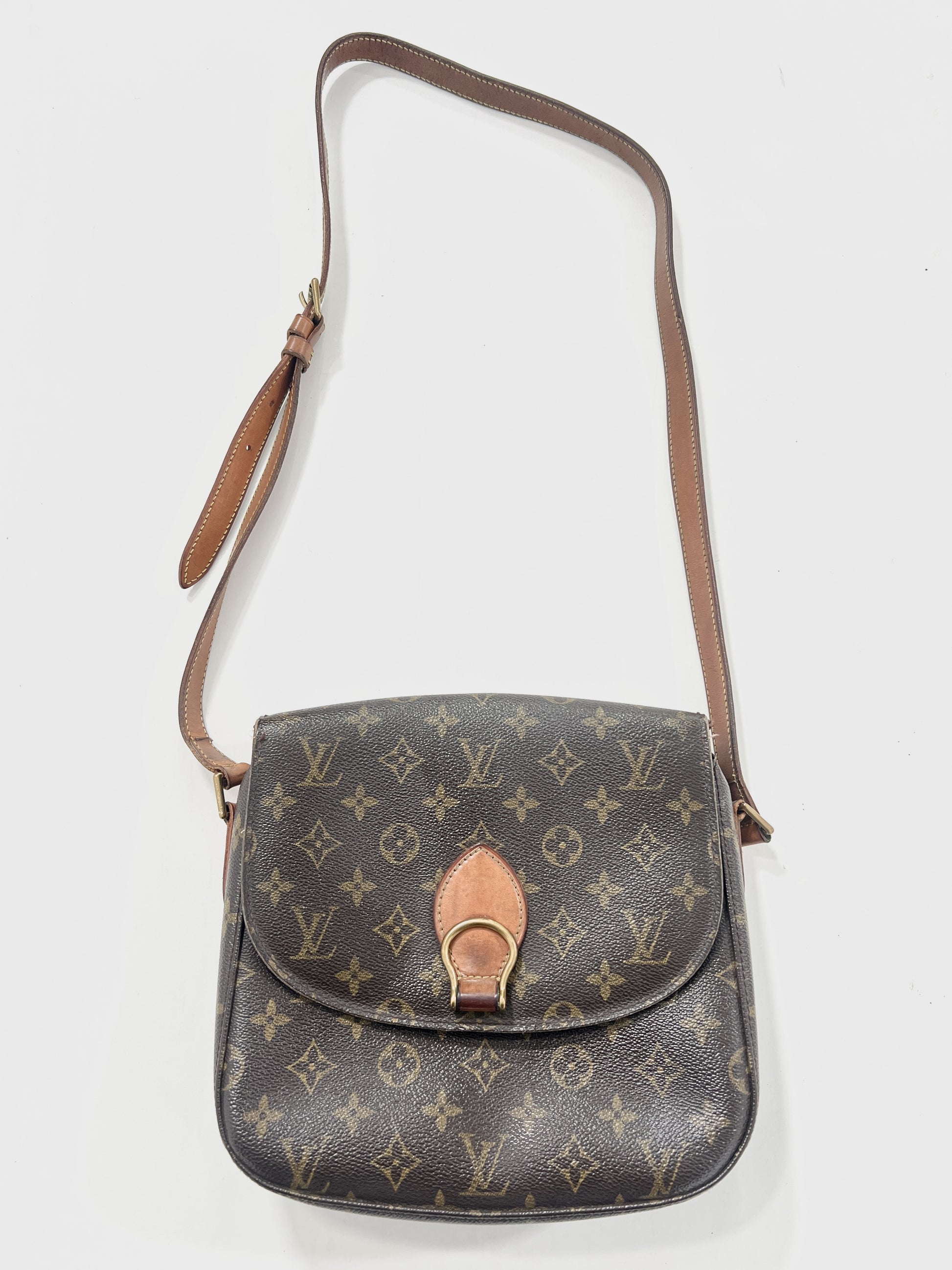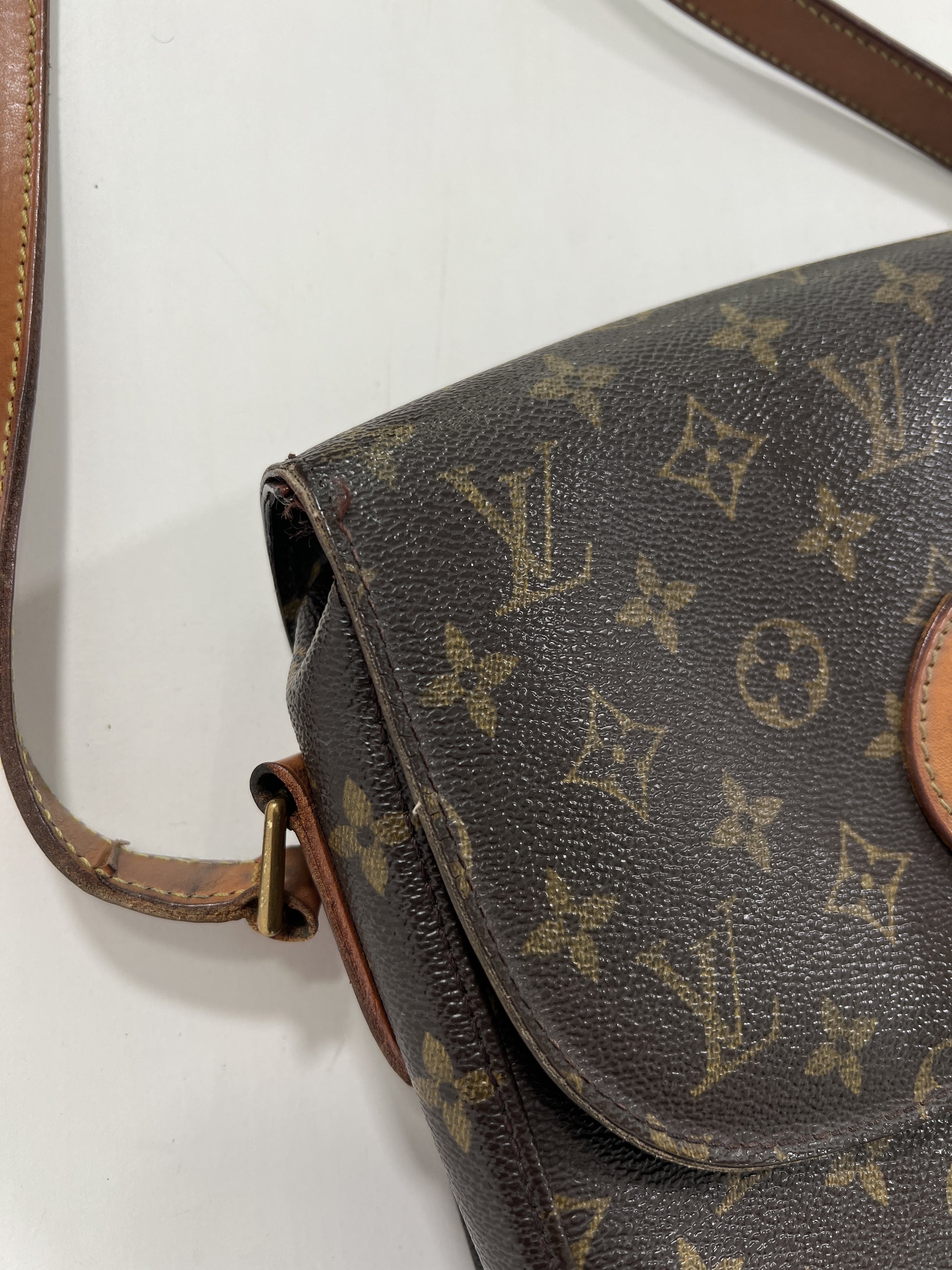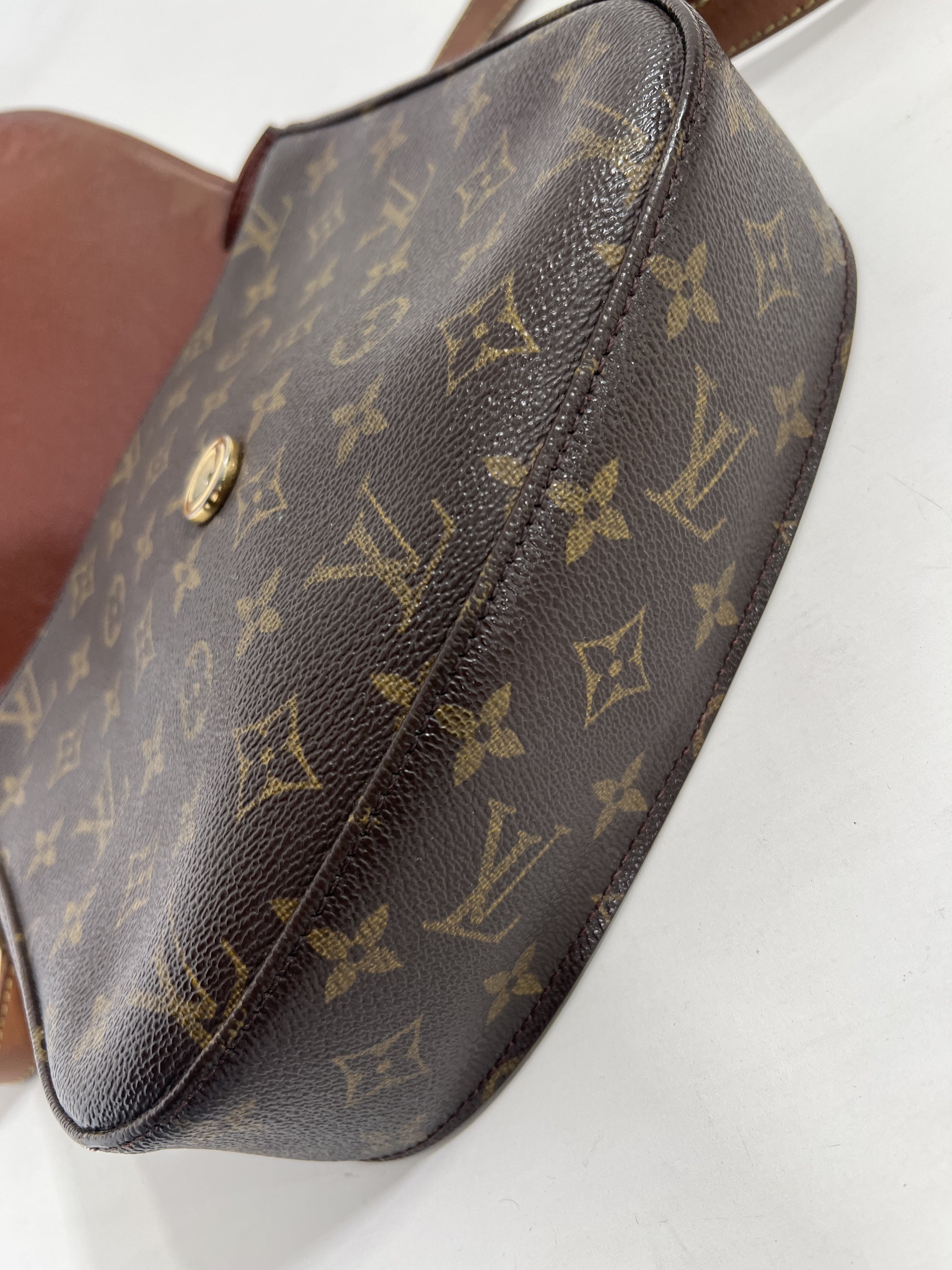 Borsa a tracolla Louis Vuitton Saint Cloud MM Monogram. Ottime condizioni nonostante l'età della borsa. Tracolla intatta, taschino interno con fibbia oro. Unico difetto da evidenziare esterno, risolvibile con ritocco marrone su pelle da esperto.