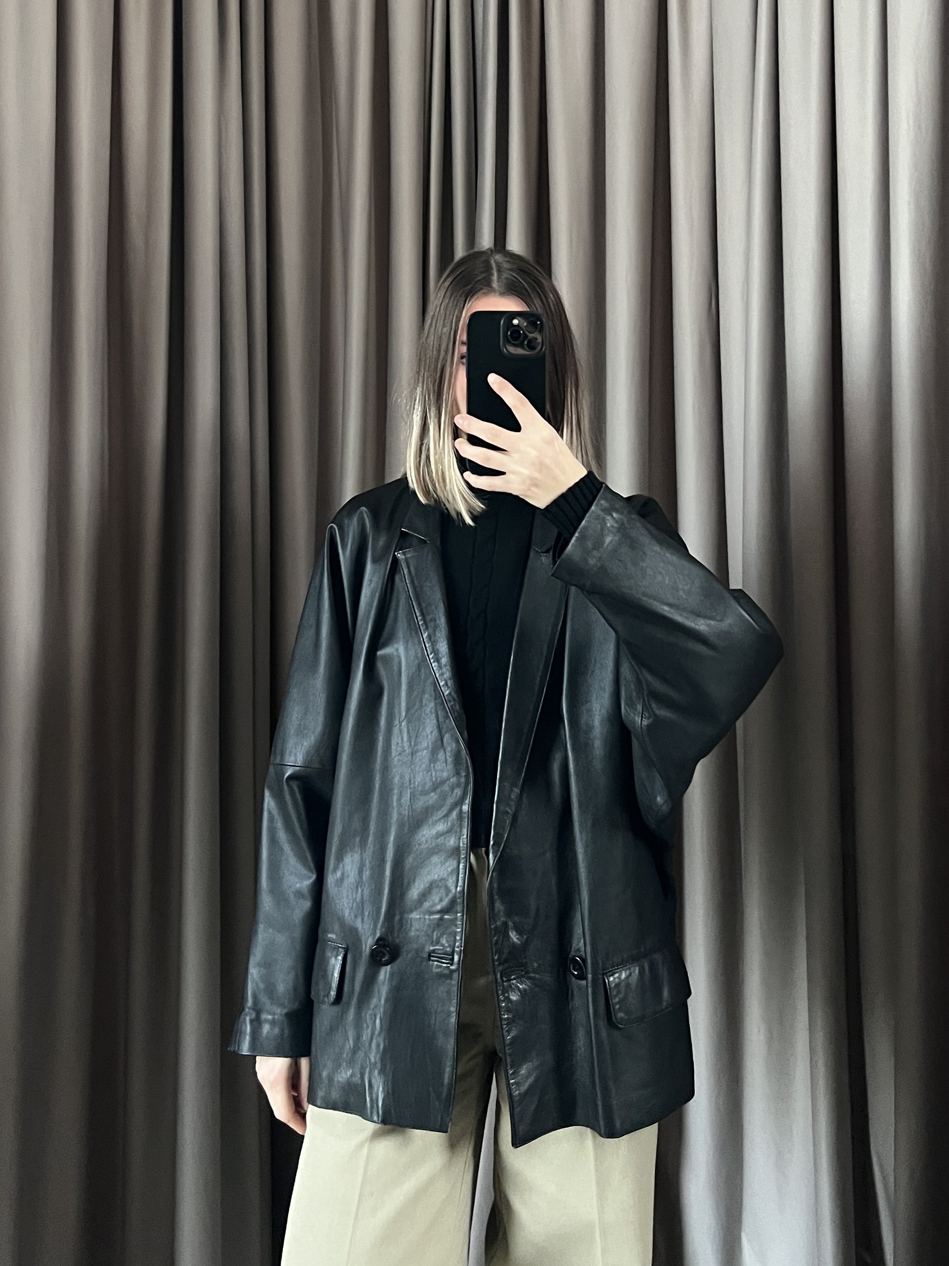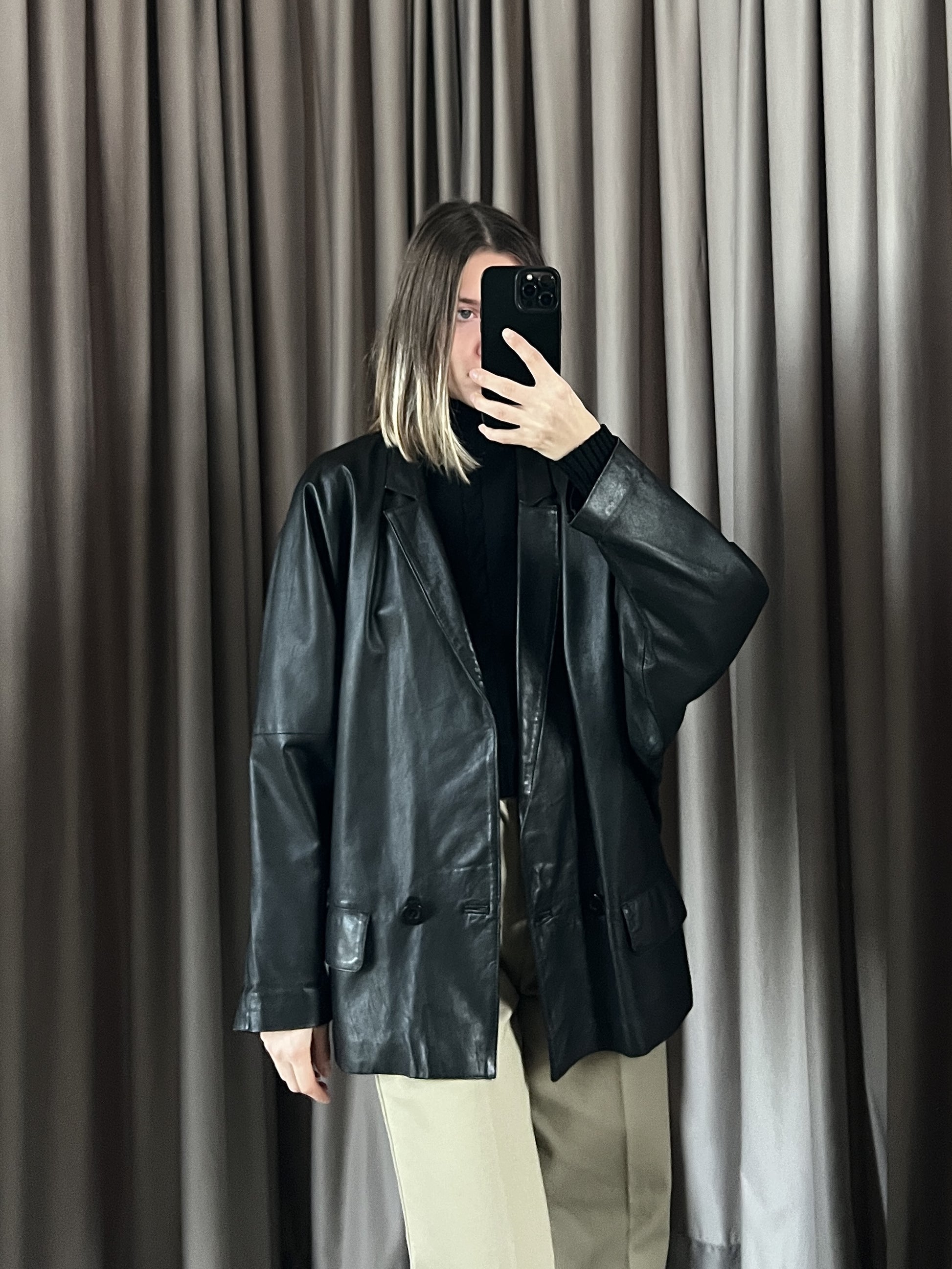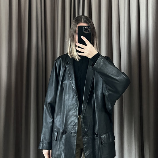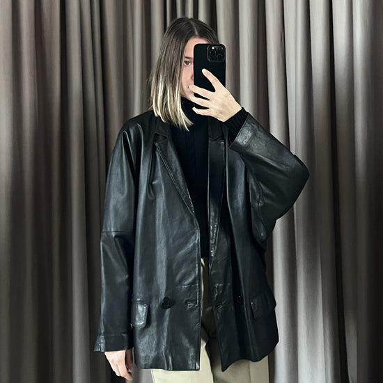 Giacca vintage in pelle doppiopetto tg 46