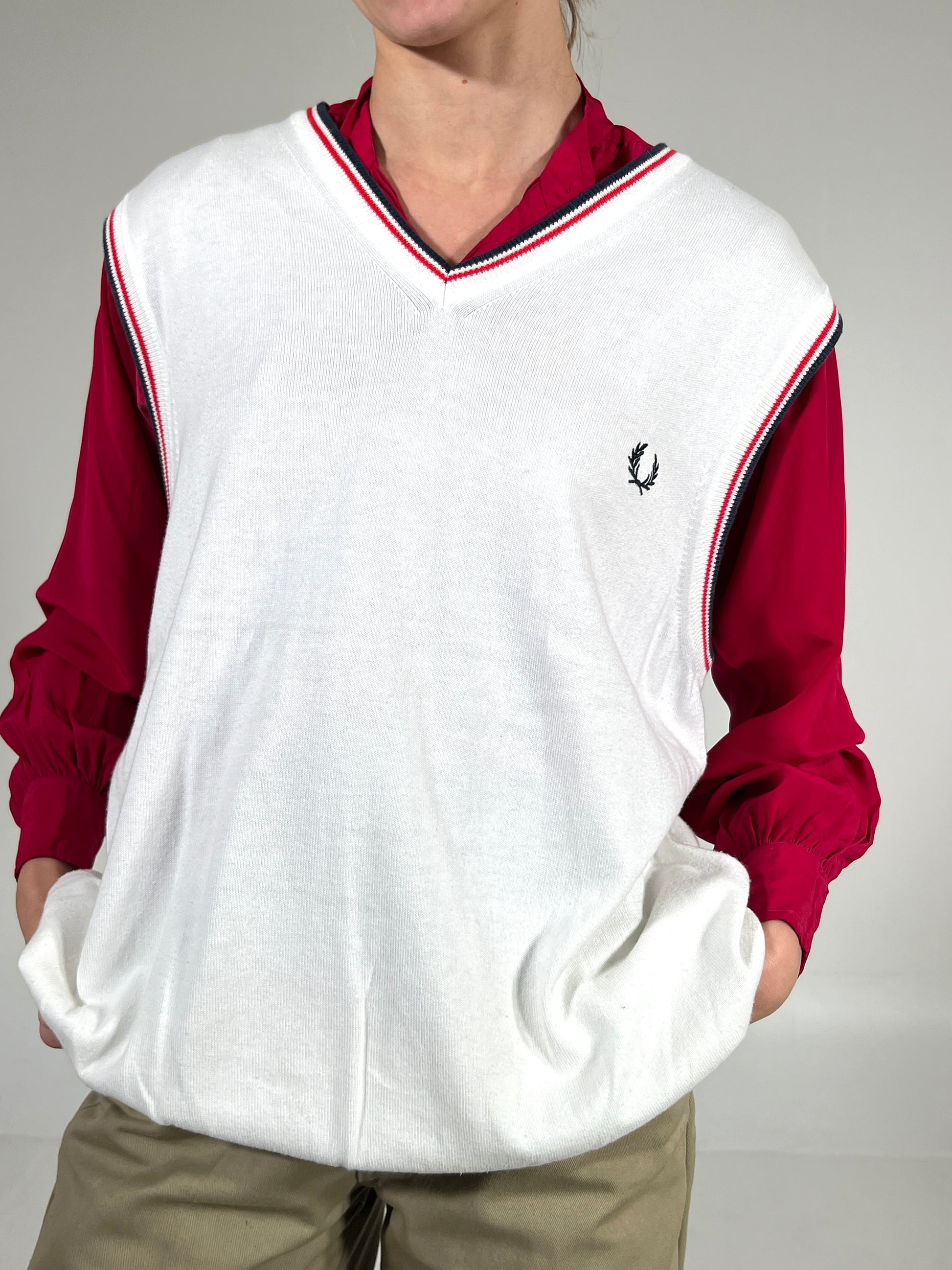 Gilet vintage Fred Perry bianco tg XXL