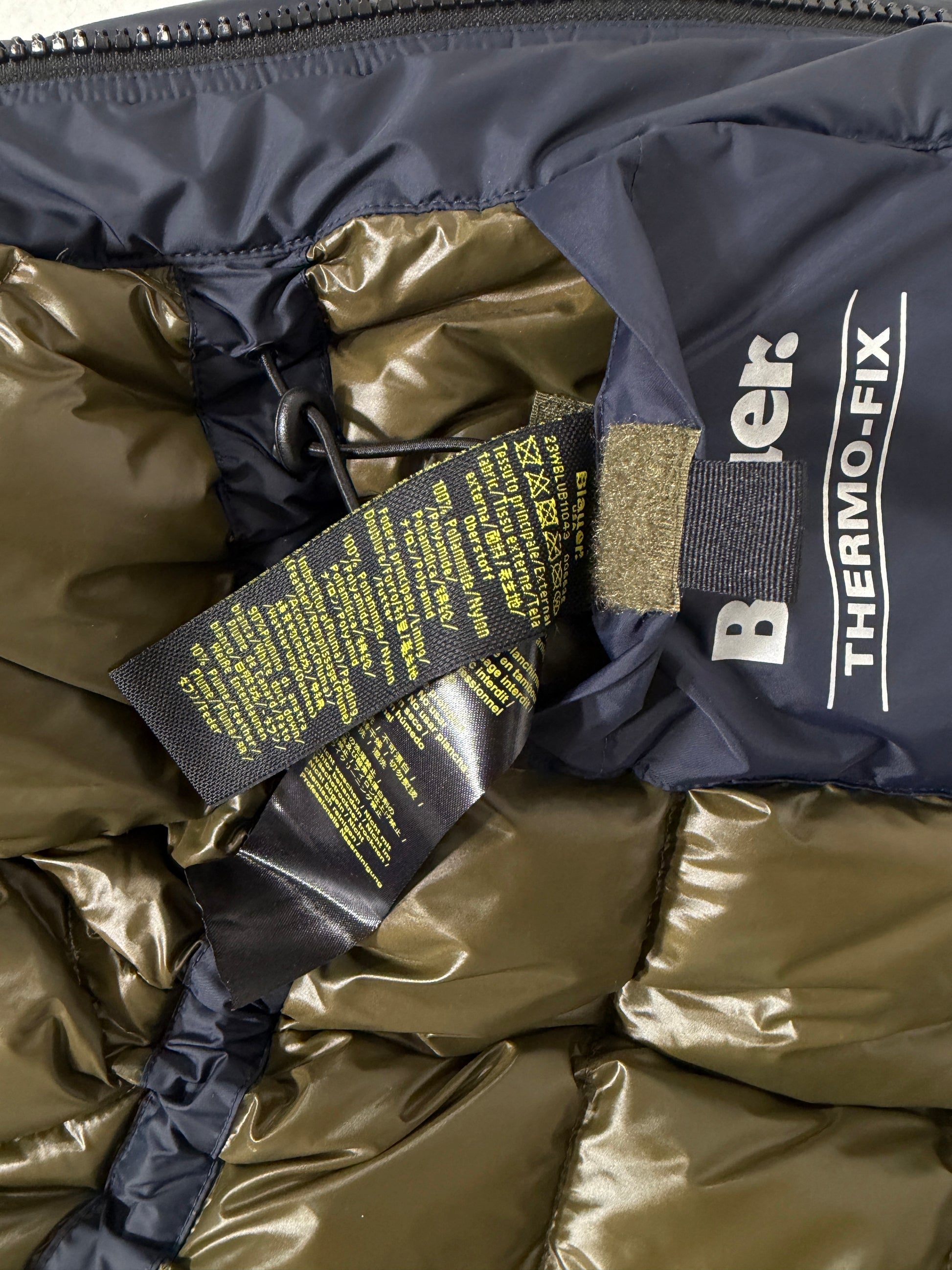 - Chiusura: Zip e bottoni logati