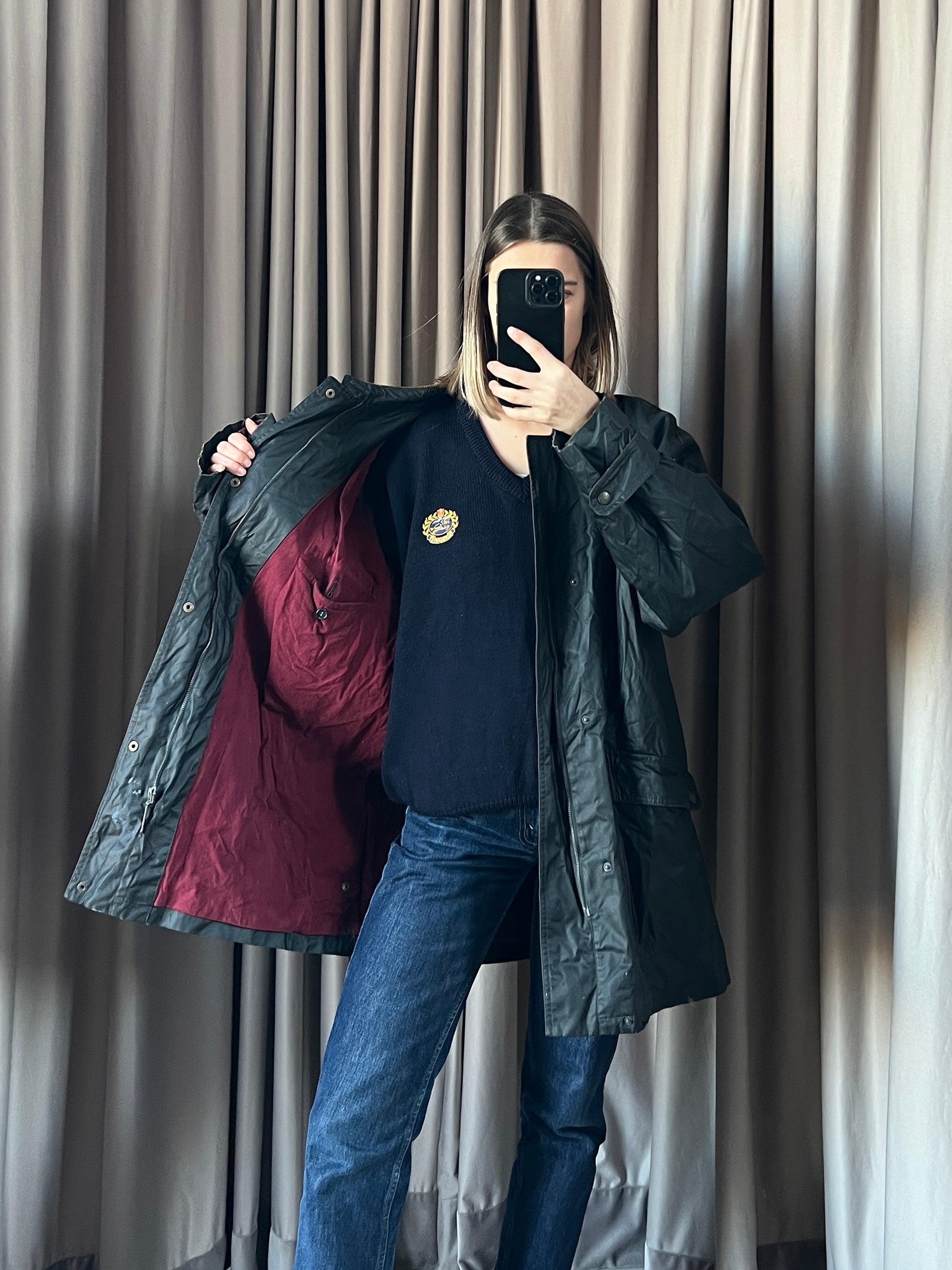 Giacca vintage Burberry antracite cerata tg 48