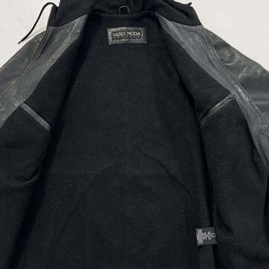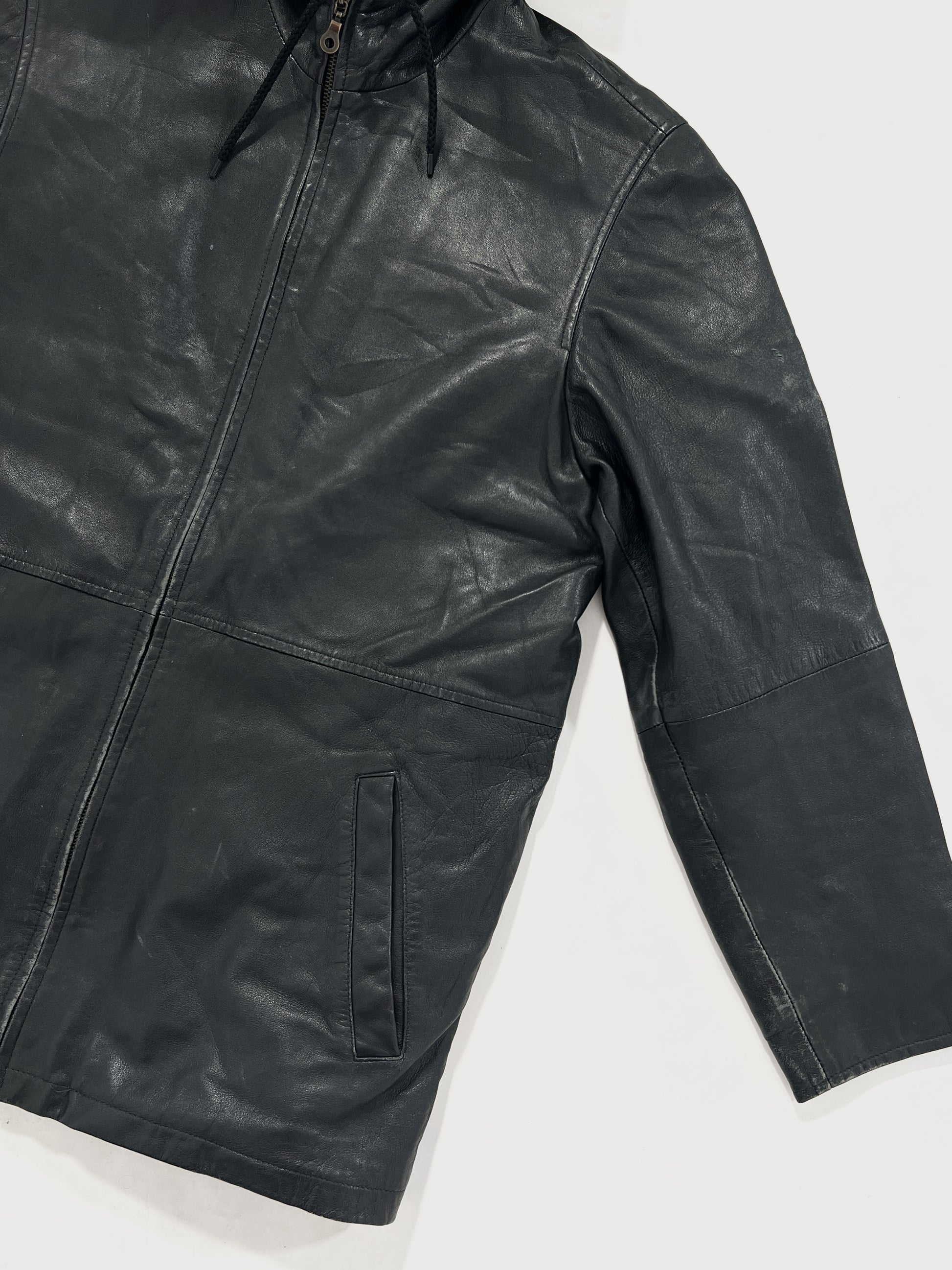 Giacca vintage in pelle con cappuccio tg S/M
