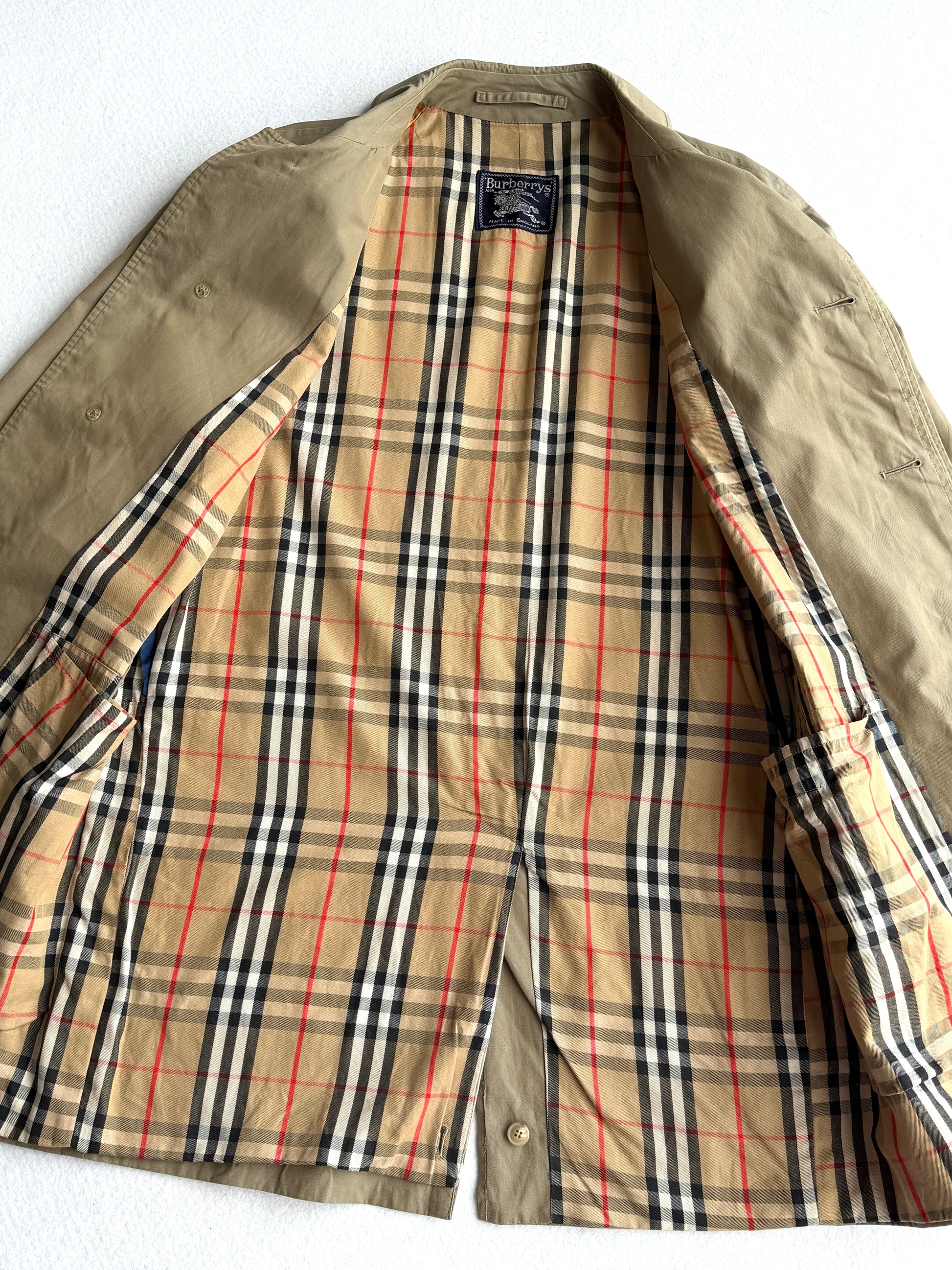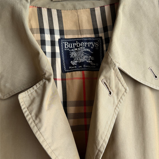 Autentico trench Burberry in tonalità verdone, un capo senza tempo che unisce eleganza classica e versatilità. L'interno tartan aggiunge un dettaglio raffinato tipico della maison britannica. In buone condizioni, questo pezzo vintage è perfetto per chi ricerca un trench autentico e di carattere. La silhouette unisex lo rende adatto a diversi stili personali, ideale per completare look sofisticati sia casual che più formali. Un investimento nel guardaroba che non passa mai di moda.