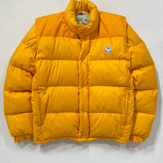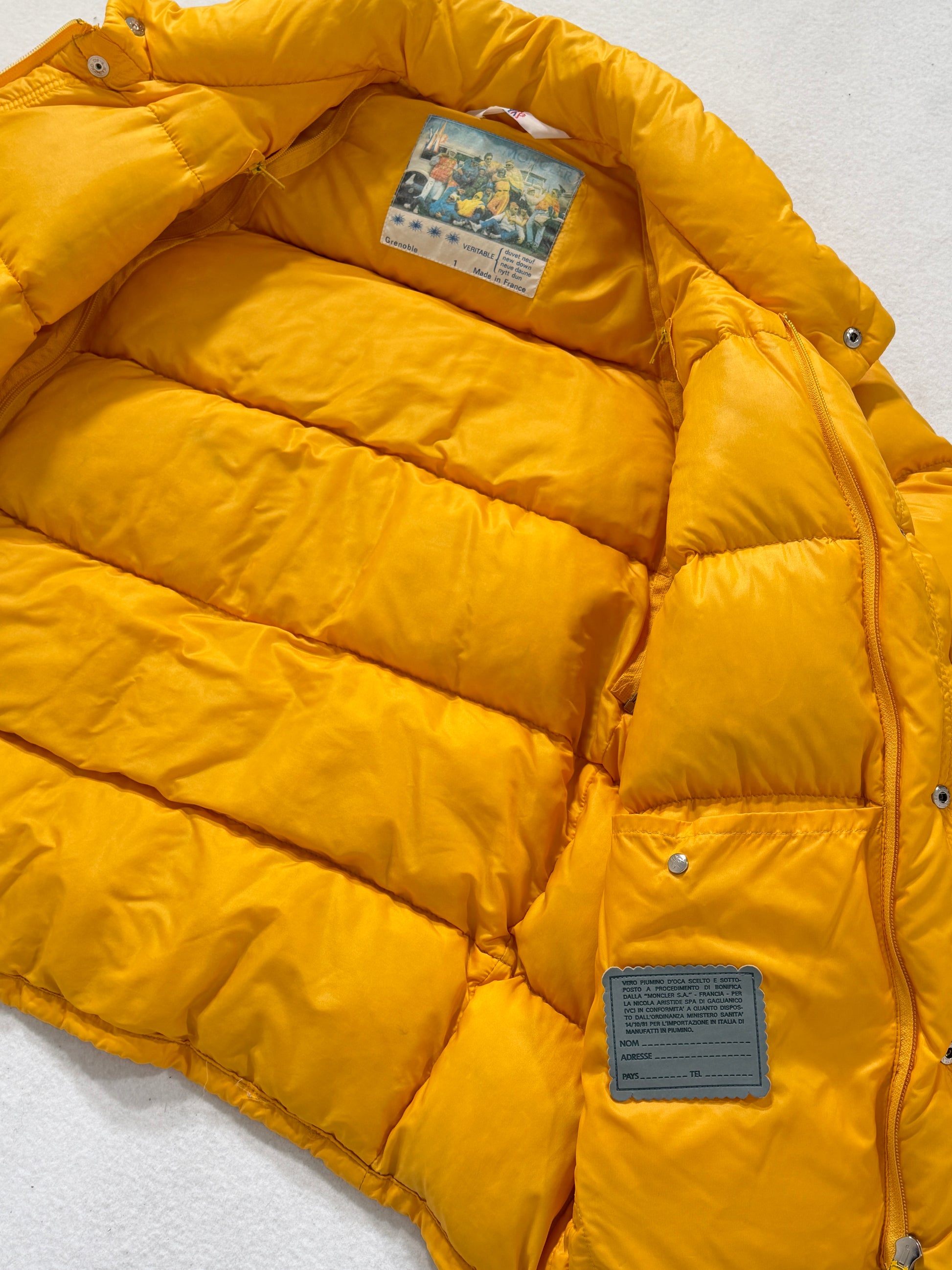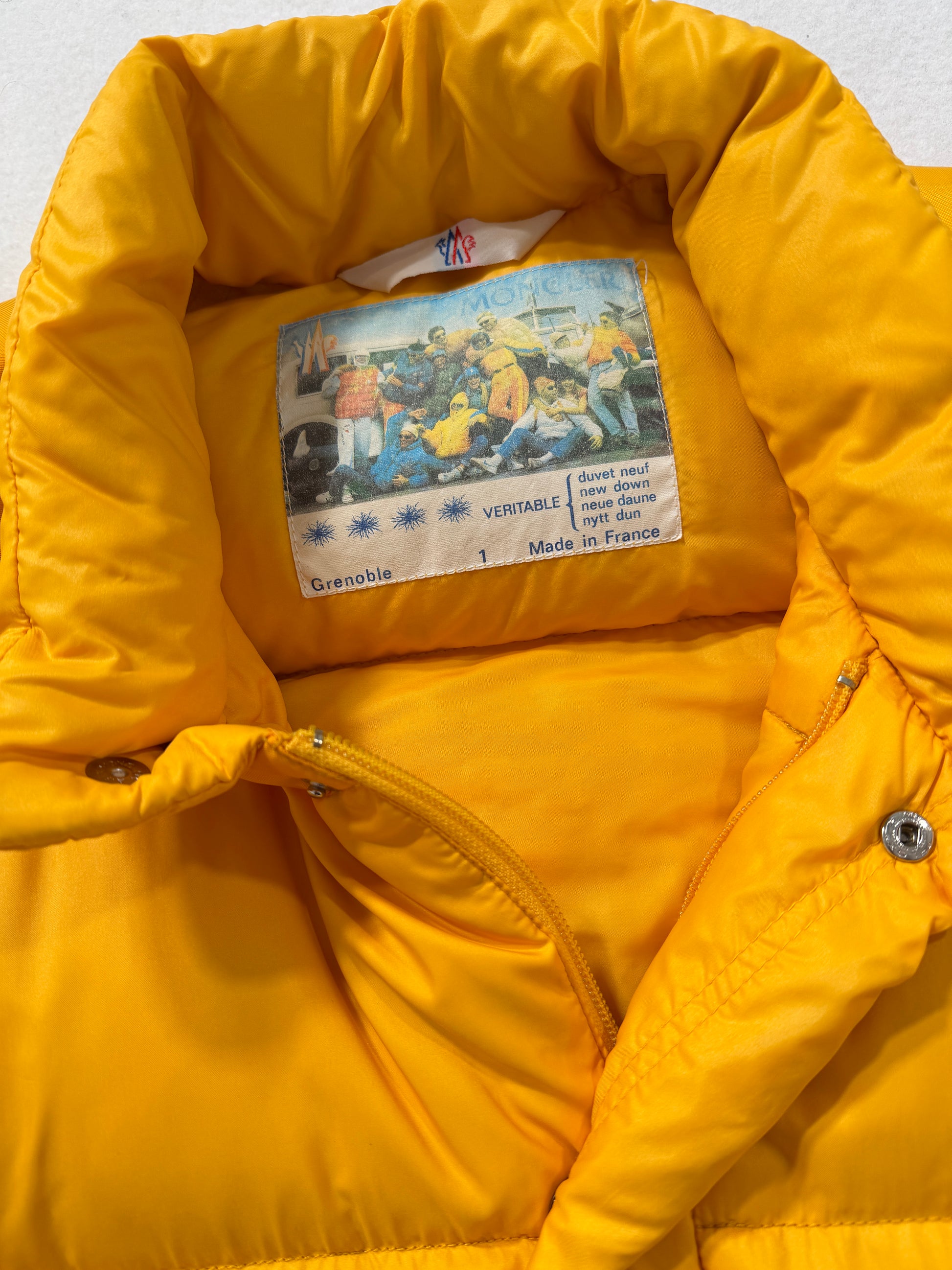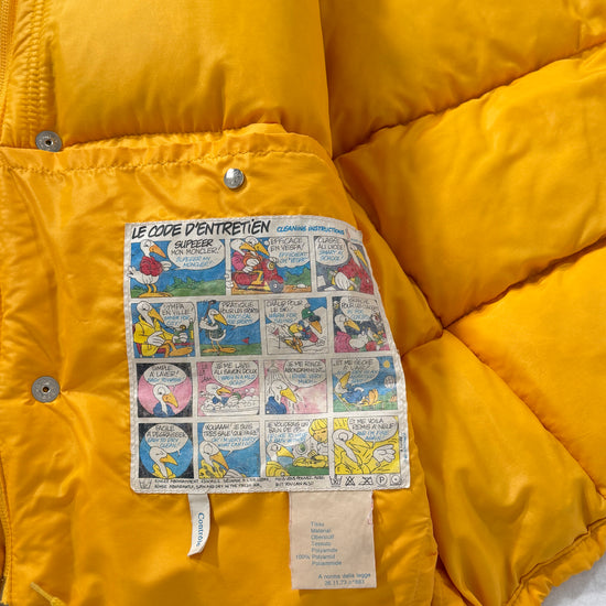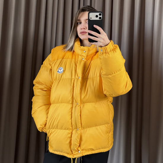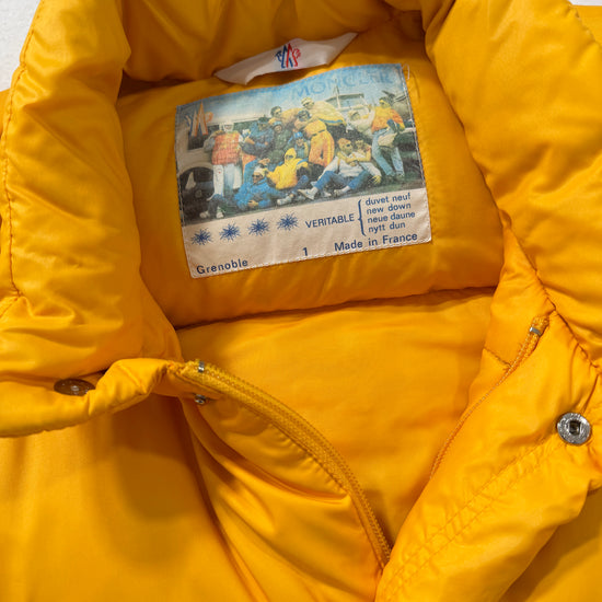 Piumino Moncler vintage Grenoble giallo pastello, storico e inconfondibile. Condizioni ottime, consigliato taglia S/M. Controllare misure in cm, unisex.