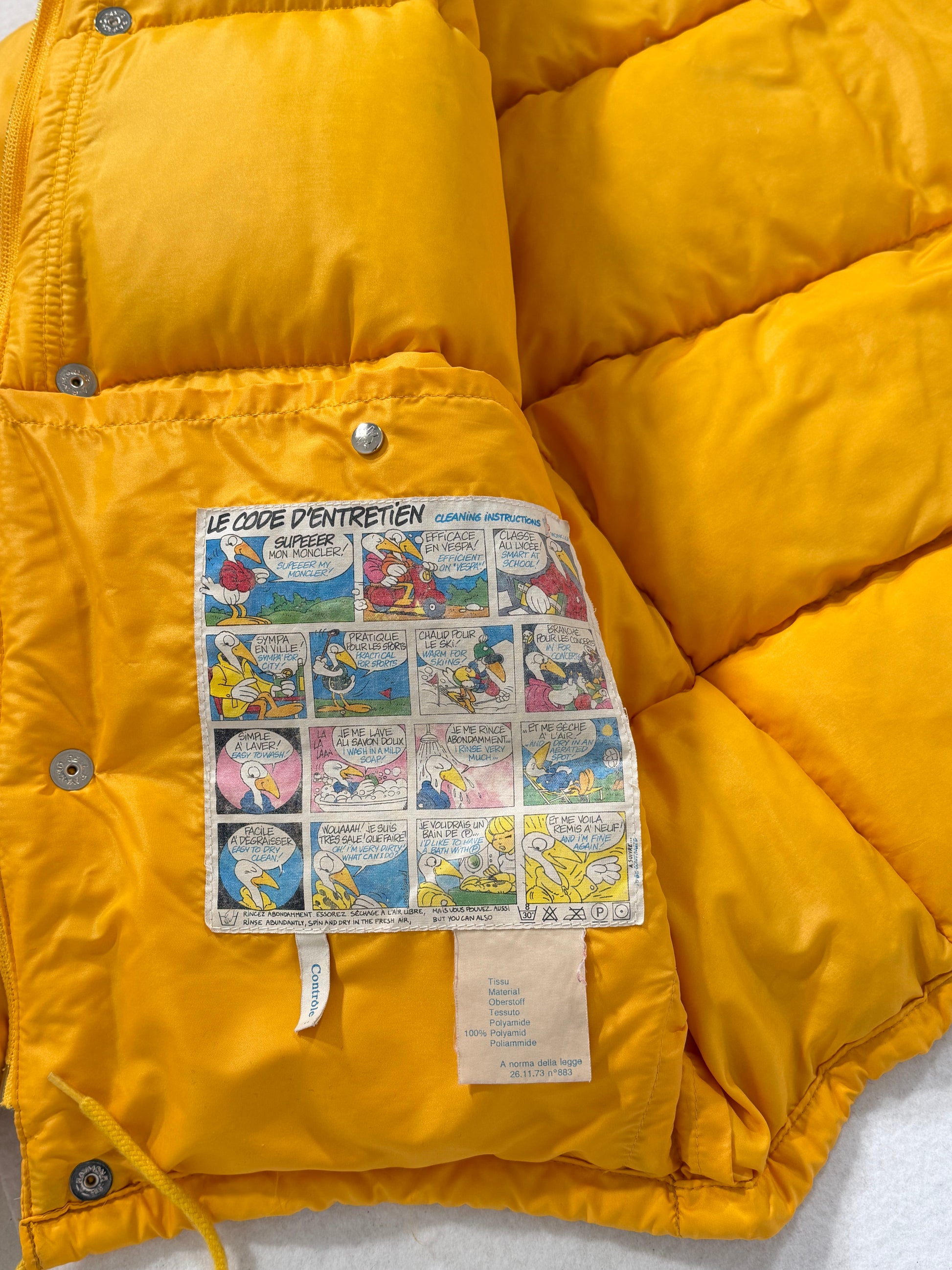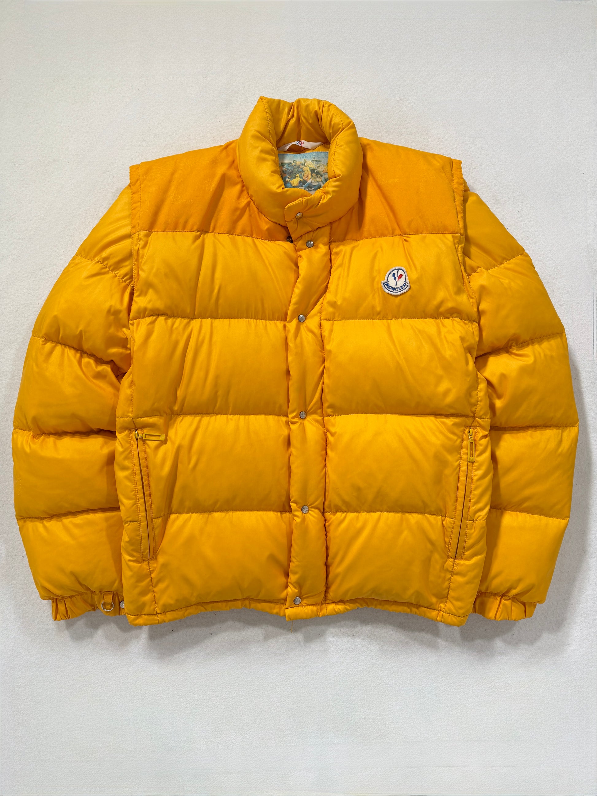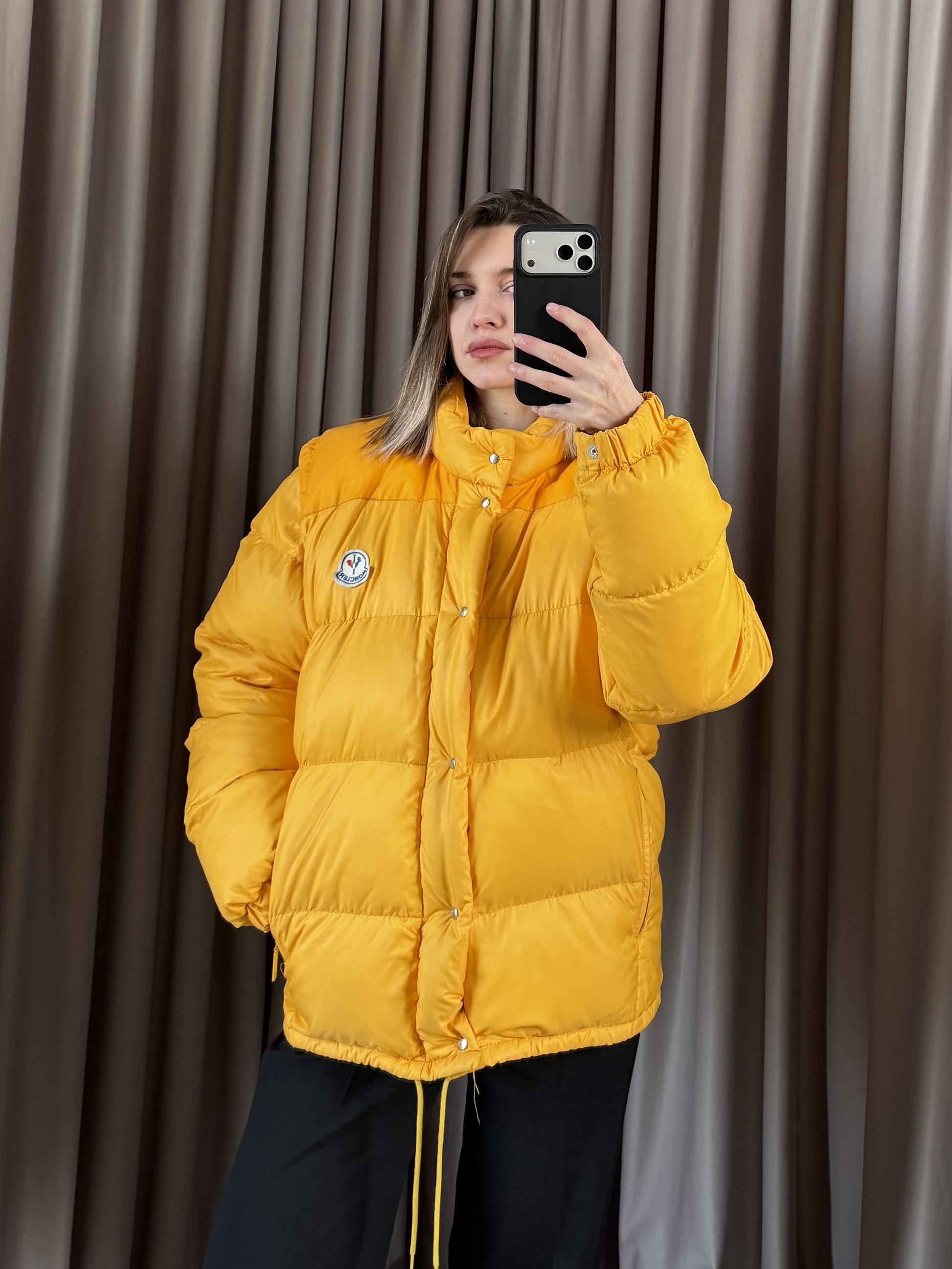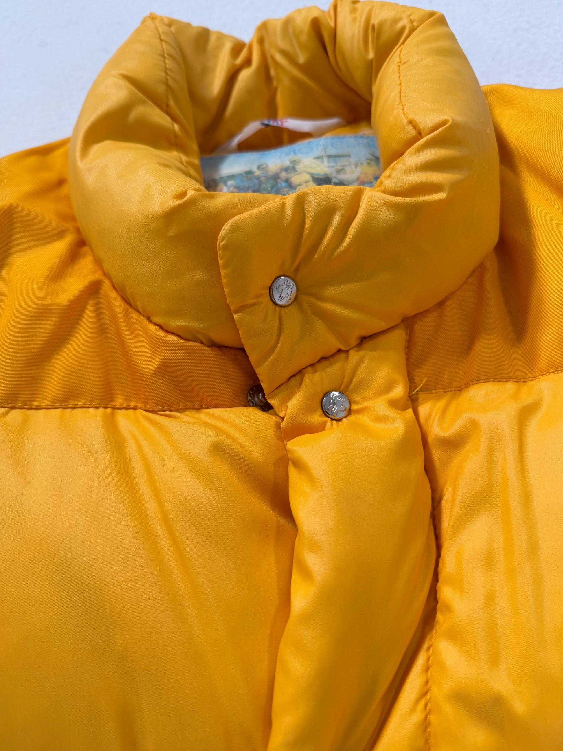 Piumino Moncler vintage Grenoble giallo pastello, storico e inconfondibile. Condizioni ottime, consigliato taglia S/M. Controllare misure in cm, unisex.